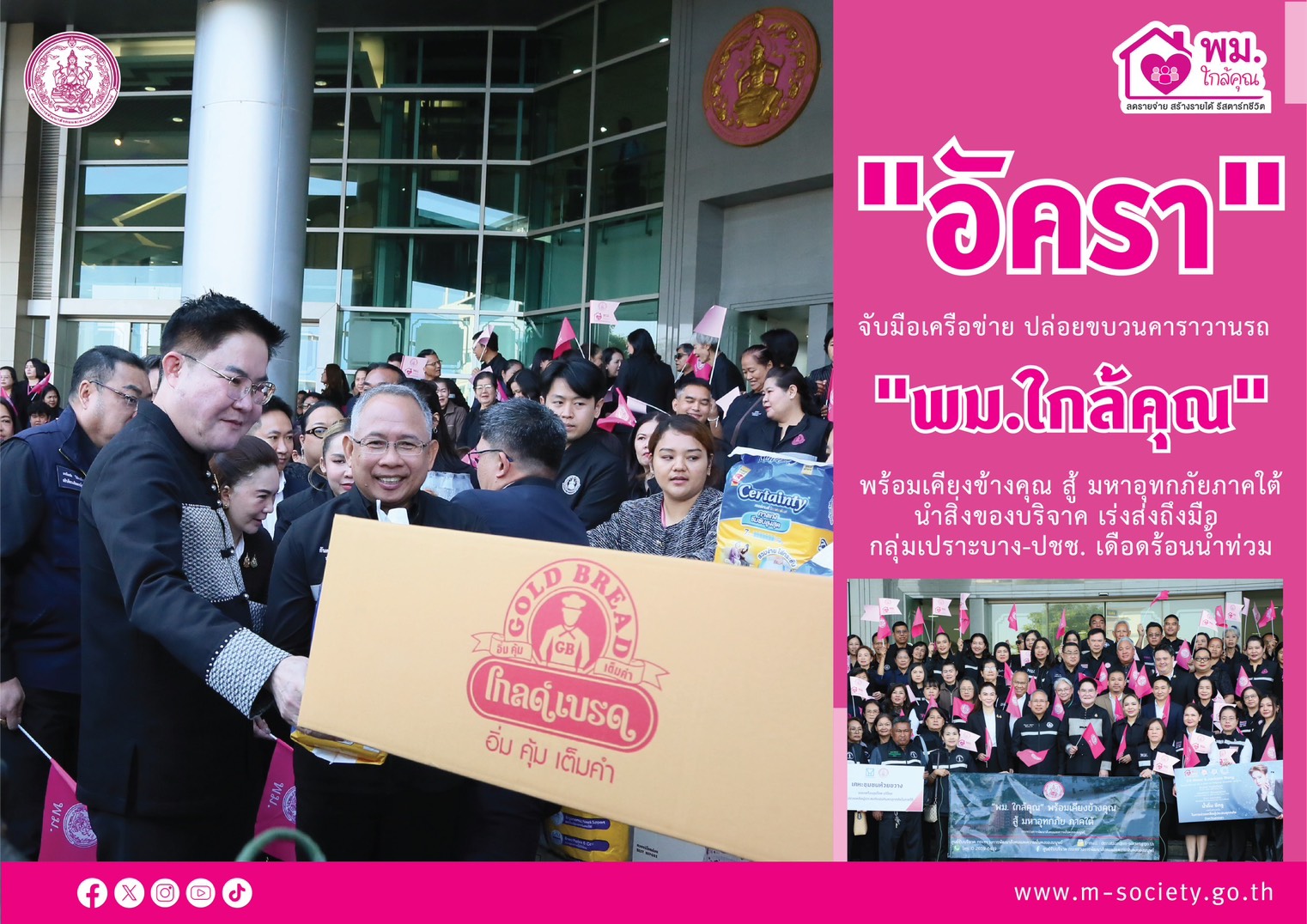 “อัครา” จับมือเครือข่าย ปล่อยขบวนคาราวานรถ “พม.ใกล้คุณ” พร้อมเคียงข้างคุณ สู้ มหาอุทกภัยภาคใต้ นำสิ่งของบริจาค เร่งส่งถึงมือ กลุ่มเปราะบาง-ปชช. เดือดร้อนน้ำท่วม