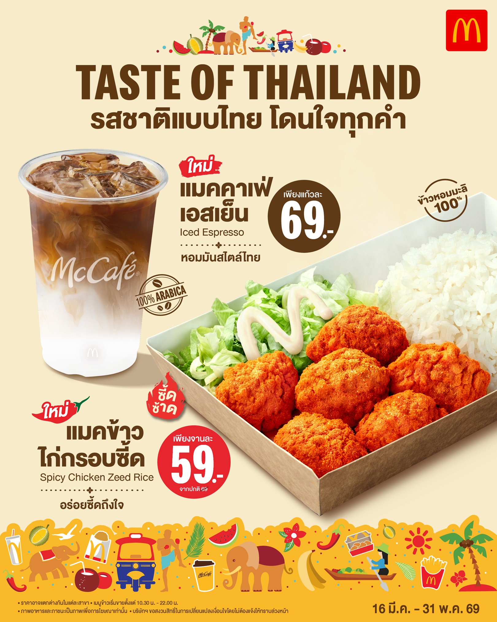 แมคโดนัลด์ จับเทรนด์ฮิต ชูความเป็นไทย สร้าง Brand Connection ผ่านการนำแรงบันดาลใจจากเมนูยอดนิยมของคนไทยมาพัฒนาความอร่อยในแบบฉบับแมคโดนัลด์ พร้อมถ่ายทอดเอกลักษณ์ของอาหารไทยผ่าน แคมเปญ ‘Taste of Thailand’ รสชาติแบบไทย โดนใจทุกคำ เปิดตัว 2 เมนู ใหม่ล่าสุด! ได้แก่ ‘แมคข้าวไก่กรอบซี้ด’ รสชาติจัดจ้าน อร่อยซี้ดถึงใจ กับไก่กรอบเนื้อแน่นที่คลุกเคล้ากับผงซี้ดรสจัดจ้านถึงเครื่องแบบไทยๆ อร่อยลงตัวกับผักกาดแก้วสดกรอบ เสิร์ฟพร้อมข้าวหอมมะลิไทยแท้ 100% เพียงจานละ 59 บาท และ…
