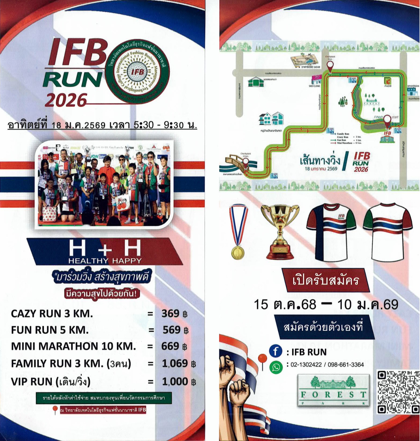 ปัจจุบัน การให้ความสำคัญกับการส่งเสริมสุขภาวะที่ดีทางกาย สมอง และจิตใจ เพื่อให้คนไทยมีสุขภาพกายและใจที่แข็งแรง เป็นเรื่องที่สำคัญและจำเป็น เราจึงได้จัดงานนี้ขึ้นภายใต้คอนเซ็ปต์ “H + H Healthy Happy มาร่วมวิ่ง สร้างสุขภาพดี มีความสุขไปด้วยกัน” โดยงานจะมีขึ้นในวันอาทิตย์ที่ 18 มกราคม 2569 เวลา 05.30-09.30 น. ณ วิทยาลัยเทคโนโลยีธุรกิจแฟชั่นนานาชาติ IFB ถนนหทัยราษฎร์