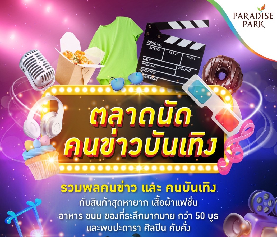 ต้อนรับปลายปีกับงานขายของสุดอบอุ่น พาราไดซ์ พาร์ค ศูนย์การค้าในเครือเอ็ม บี เค ร่วมกับ ชมรมนักข่าวบันเทิง จัดงาน “ตลาดนัดคนข่าวบันเทิง” งานที่รวมคนในวงการบันเทิงและนักข่าวมาร่วมคับคั่ง พร้อมชวนแฟน ๆ มาสัมผัสความใกล้ชิดกับดาราศิลปินตัวจริงเสียงจริง และช้อป ชิม ไปกับสินค้าคุณภาพและอาหารอร่อยกว่า 50 บูธ