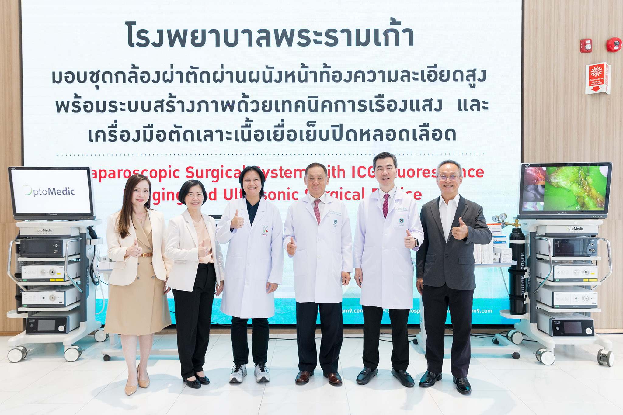 นพ.เสถียร ภู่ประเสริฐ กรรมการผู้อำนวยการ โรงพยาบาลพระรามเก้า พร้อมด้วย นพ. วิทยา วันเพ็ญ รองกรรมการผู้อำนวยการ ฝ่ายพัฒนาธุรกิจและสำนักงานแผนยุทธศาสตร์ และ นางสาวขมาภรณ์ ธัมพิพิธ รองกรรมการผู้อำนวยการ กำกับดูแลฝ่ายบัญชีการเงิน มอบกล้องผ่าตัดเคลื่อนที่ความละเอียดสูง ภายใต้โครงการ “ส่งต่อการให้” เพื่อแก้ปัญหาความเหลื่อมล้ำในการเข้าถึงการรักษาพยาบาลคุณภาพ โดยมี พญ.กรชนก ตั้งนภาดล แพทย์ผู้ชำนาญการศัลยกรรม โรงพยาบาลยะลา เป็นตัวแทนรับมอบ ณ ลาน LED Wall ชั้น 1 อาคารบี โรงพยาบาลพระรามเก้า เมื่อเร็วๆนี้