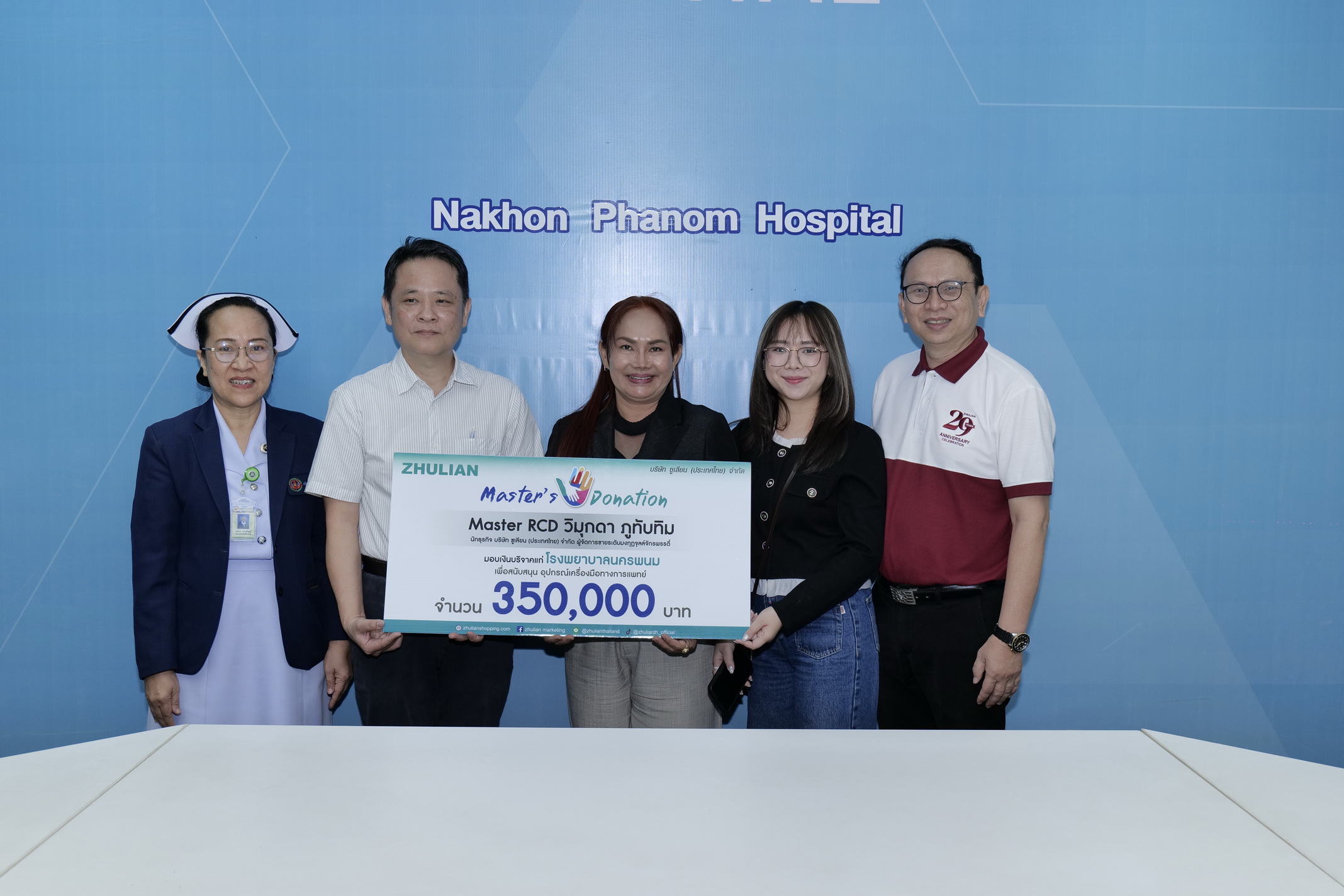 รับมอบเงินจำนวน 350,000 บาท สำหรับจัดซื้อเวชภัณฑ์และอุปกรณ์ทางการแพทย์ที่จำเป็น เพื่อเสริมศักยภาพการดูแลรักษาผู้ป่วย โดยมี ภก.วิชิต เหล่าวัฒนาถาวร เป็นตัวแทนรับมอบ