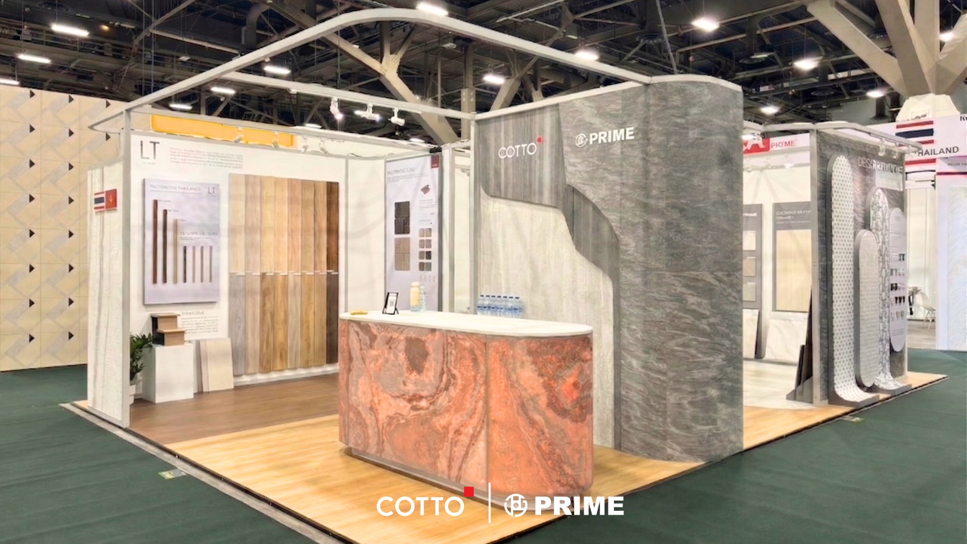 ภายในบูธ COTTO และ PRIME นำเสนอผลิตภัณฑ์กระเบื้องที่สามารถประยุกต์ใช้ได้ทั้งภายในและภายนอกอาคาร โดยหนึ่งในไฮไลต์สำคัญคือคอลเลกชัน Wood Plank ซึ่งถ่ายทอดผิวสัมผัสเสมือนไม้จริงอย่างประณีต ตอบรับไลฟ์สไตล์ของผู้บริโภคในตลาดอเมริกาที่นิยมความอบอุ่นของพื้นไม้ ควบคู่กับความทนทานต่อการใช้งาน ทั้งในด้านความชื้นและรอยขีดข่วนจากสัตว์เลี้ยง